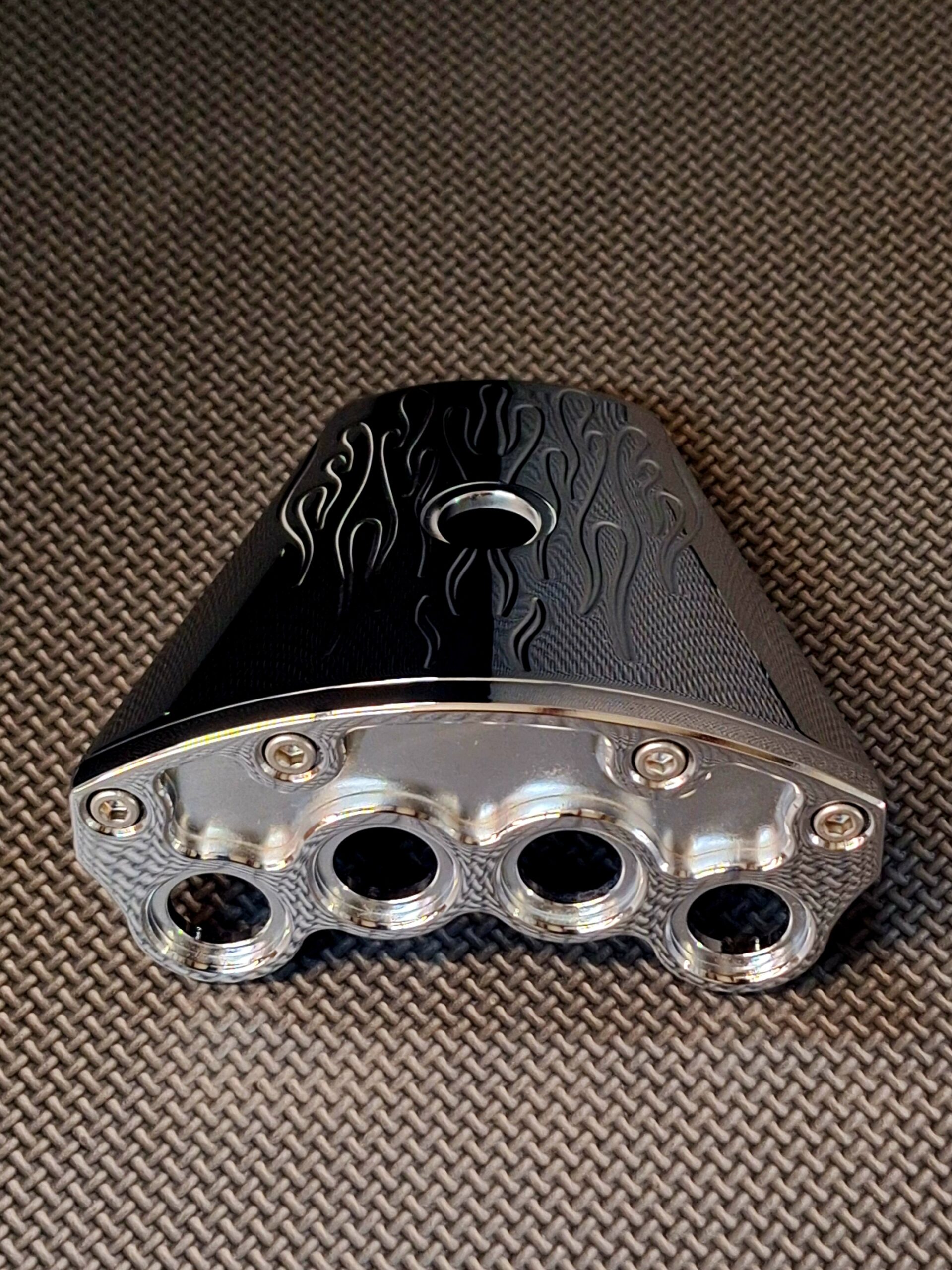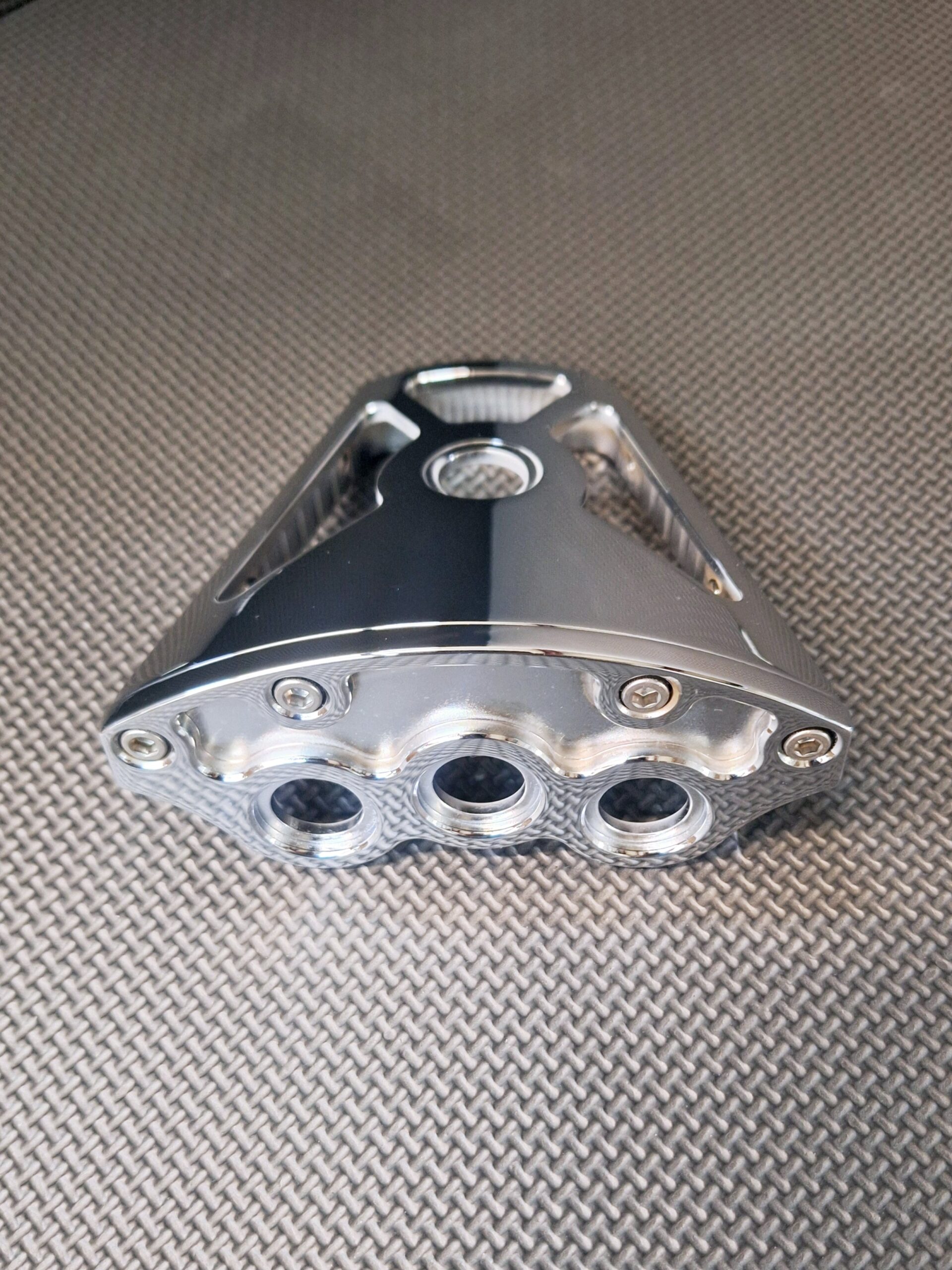 You are looking at our in-house designed & manufactured – WIDE GRIP – Butterfly Steering Wheel Button Mount. Wide Grip means you can mount up to 4 buttons on the face and one up top! 2 different tops and 2 different faces are available.