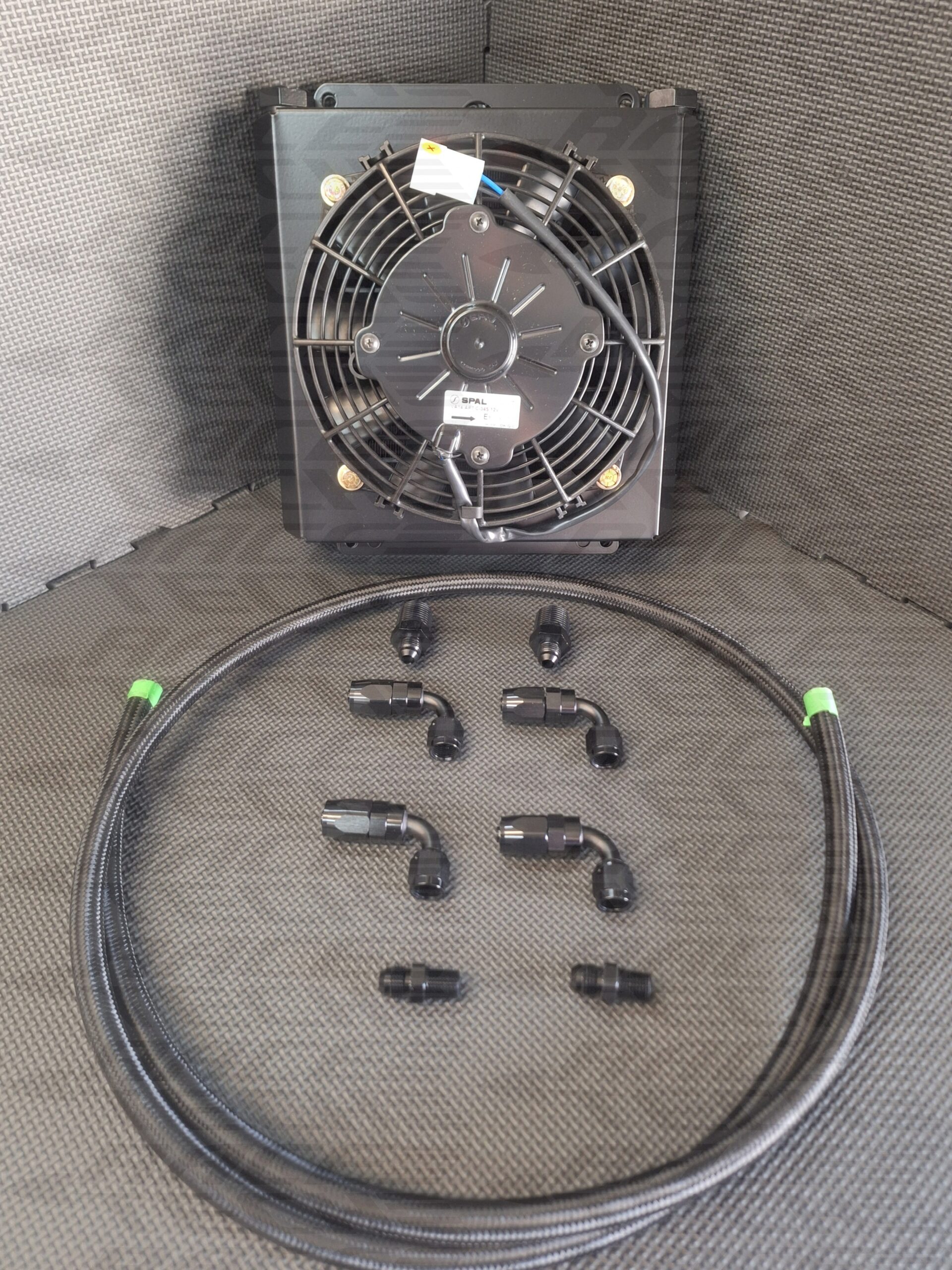 All come with 9.75 X 10.625 X 1.25 Cooler, 2 AN-6 screw in fittings, 2 transmission fittings, 4 90 degree fittings, 20′ of black braided hose, shroud, & 7.5″ fan.