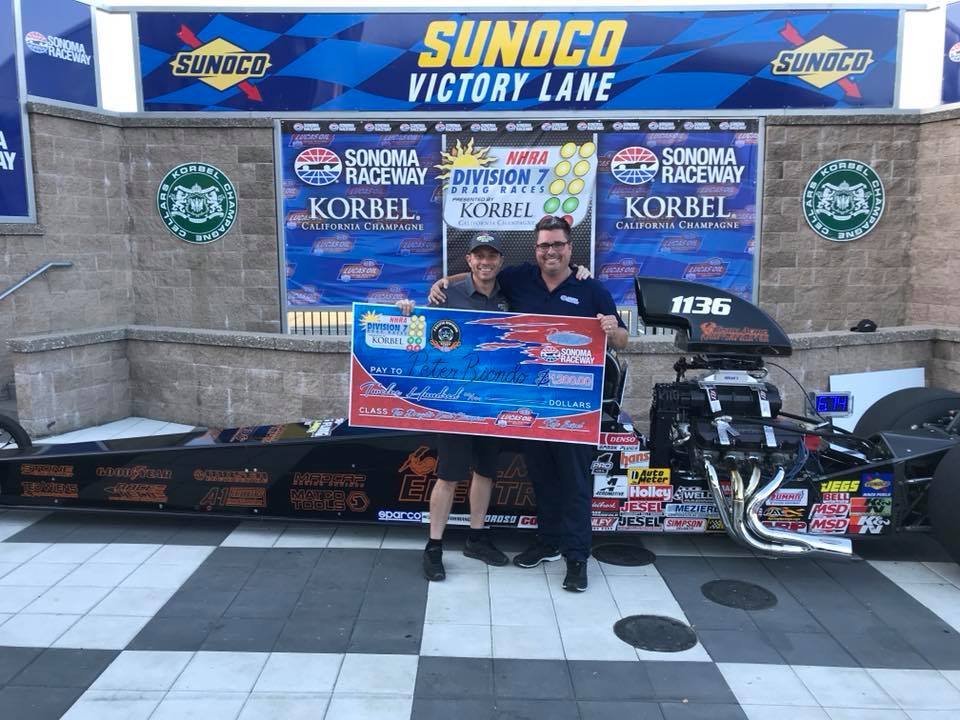 Peter Biondo traveled a long ways to help support his long time friend and business partner Kyle Seipel. Looks like he made the trip worth his while, picking up the win in Top Dragster in Justin Lambs supercharged Race Tech Dragster!