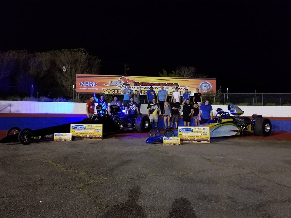 Car owner/racer Steve Witherow , had both of his Race Tech Dragsters out this weekend at VMP for the Colonial Classic bracket race. With that being said Jeff Serra and Kyle Cultrara wheeling the cars for Team “W” had a impressive outing, with each driver winning 1 out of 3 races and a pair of runner ups. Not only that, both drivers met each other in the final on Sunday. Congrats!
