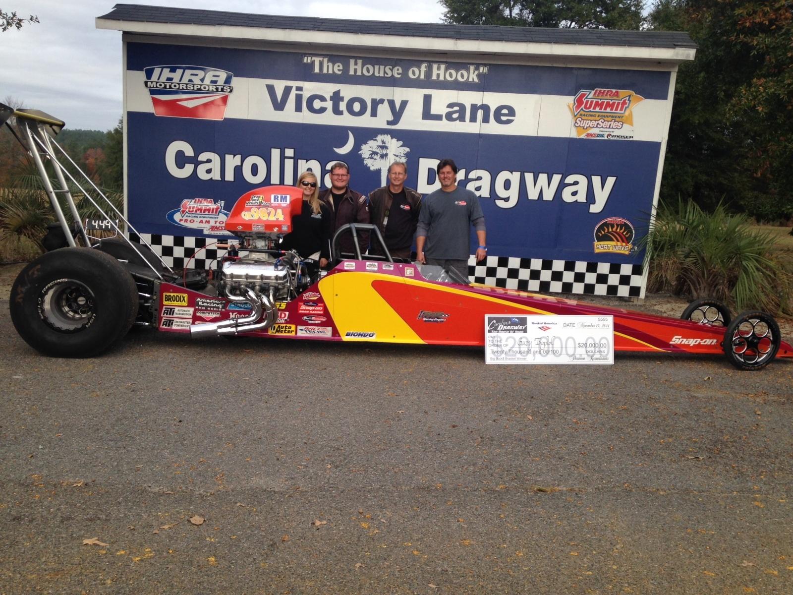 Congrats to Gary Ingold on his $20000.00 payday at the House Of Hook, Carolina Dragway. Gary laid down some great runs in his Race Tech 4-link dragster to take the win.