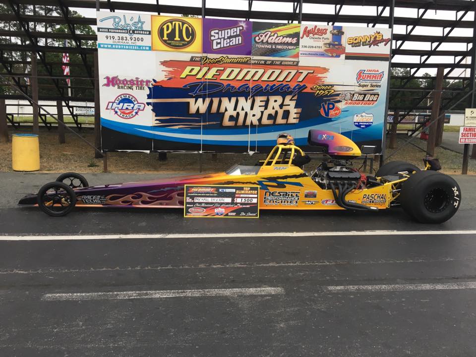 Micheal Paschal picked up a Top Eliminator win last week at Piedmont Dragway, closing the deal in his Race Tech Dragster just before the rain.