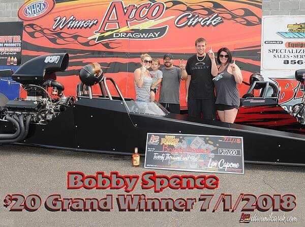 Bobby Spence wins with his Procharged Race Tech Dragster against another great Race Tech driver, Scotty Bodmer, for a big $20,000 check! Bobby has been a long time Race Tech Customer and that procharged dragster is both fast and consistent! He can get it done!